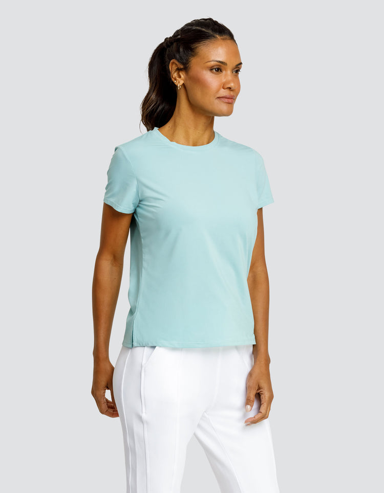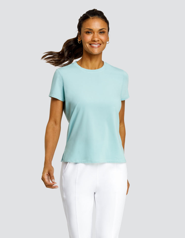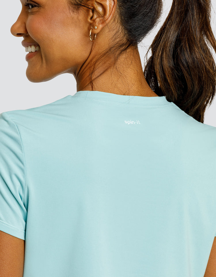 Spin it to win it! This lightweight, crew neck, boxy short sleeve top has side vents for comfort. The Bijou Top is made from our iCottony Jersey; a moisture wicking, wrinkle resistant fabric with a cotton feel.