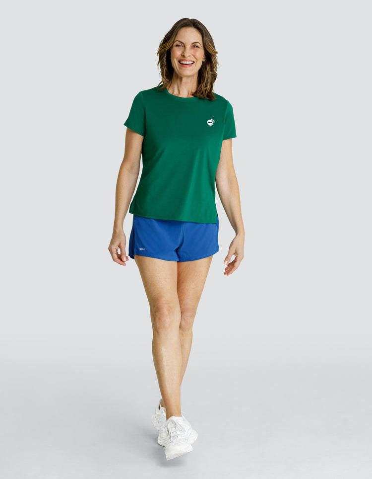 Spin it to win it! This lightweight, crew neck, boxy short sleeve top has side vents for comfort. The Bijou Top is made from our iCottony Jersey; a moisture wicking, wrinkle resistant fabric with a cotton feel.
