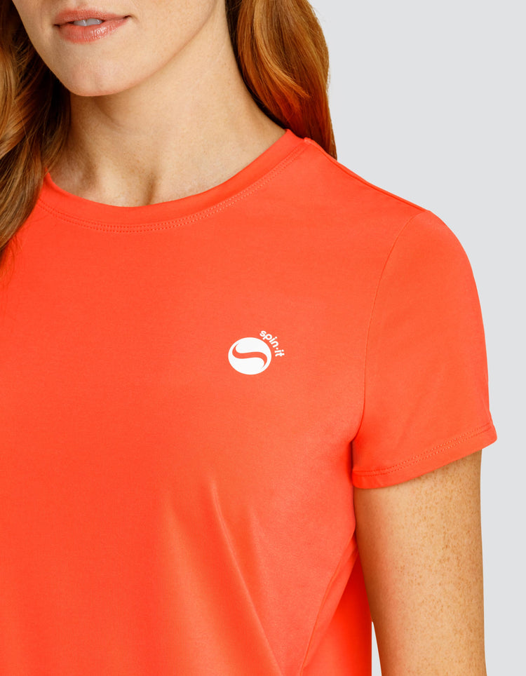 Spin it to win it! This lightweight, crew neck, boxy short sleeve top has side vents for comfort. The Bijou Top is made from our iCottony Jersey; a moisture wicking, wrinkle resistant fabric with a cotton feel.