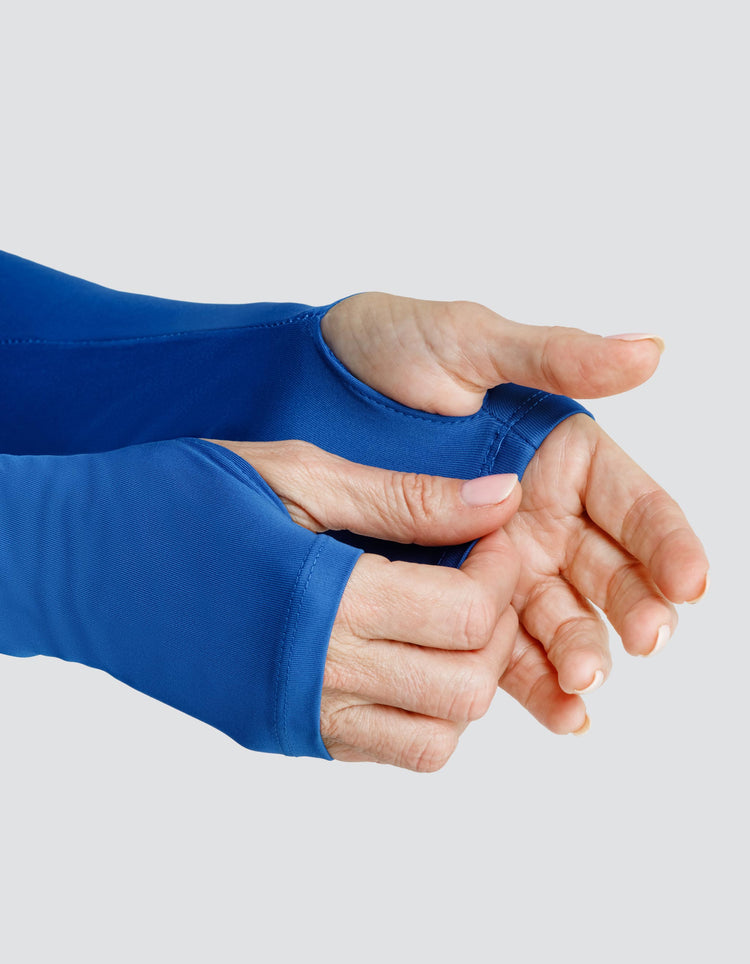 - Thumb hole openings at bottom of sleeves