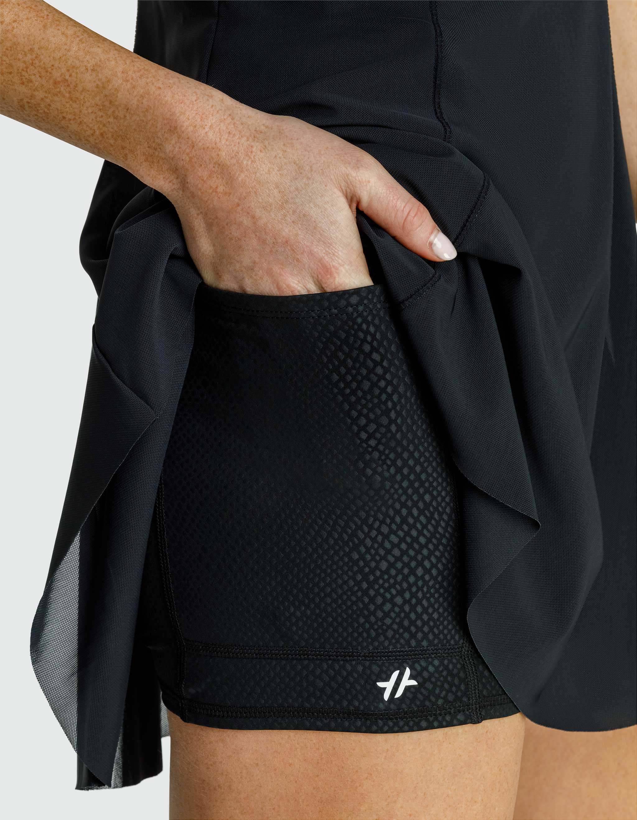 Combining cutting-edge design with performance-driven features, the Meghan dress includes a sculpting bodysuit that provides support and ease of movement. With side pockets for your essentials and a breathable mesh dress for style, you'll stay cool and confident throughout every match.