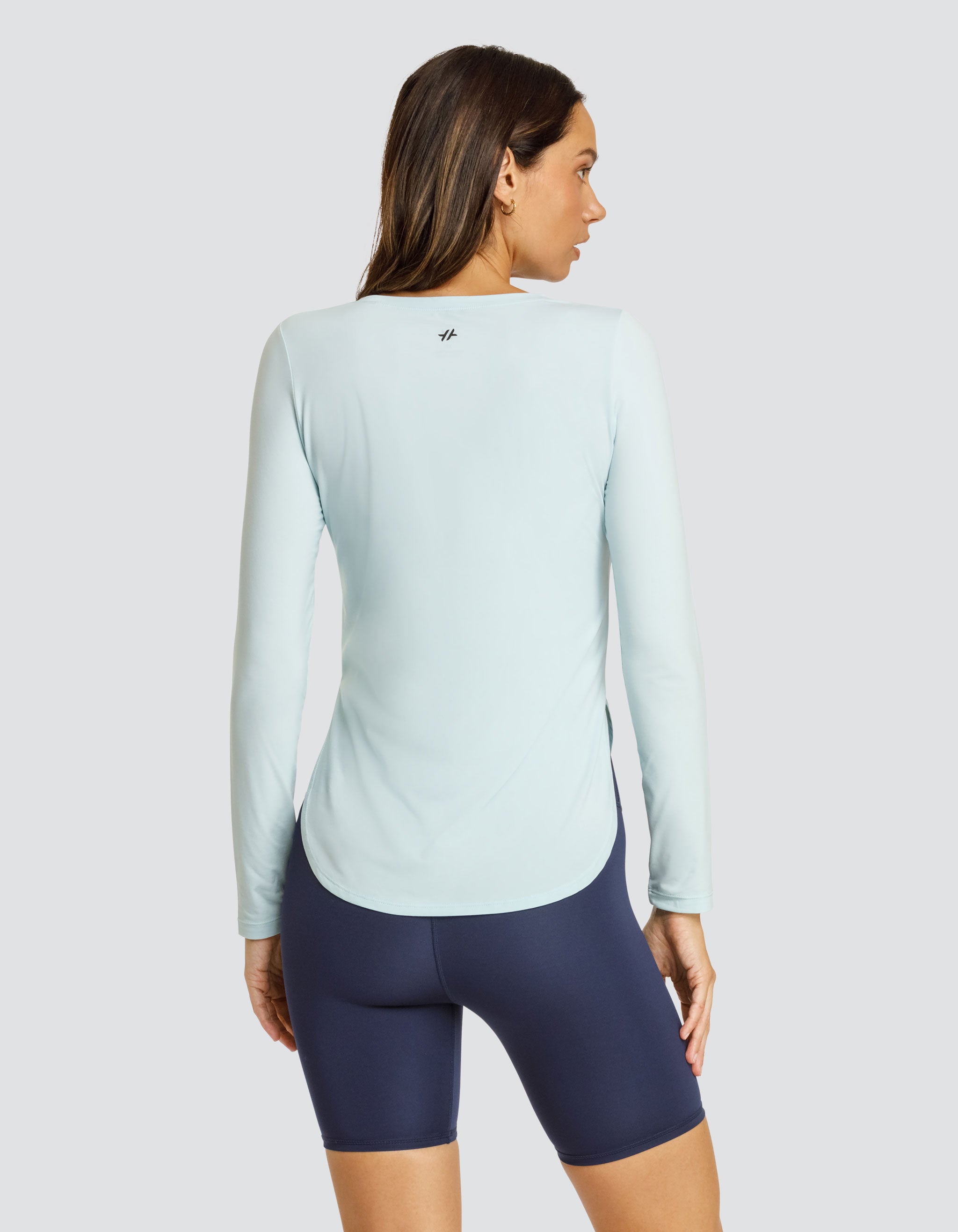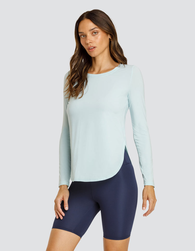 PANEM LONG SLEEVE SCOOP HEM TOP - BLUE GLOW